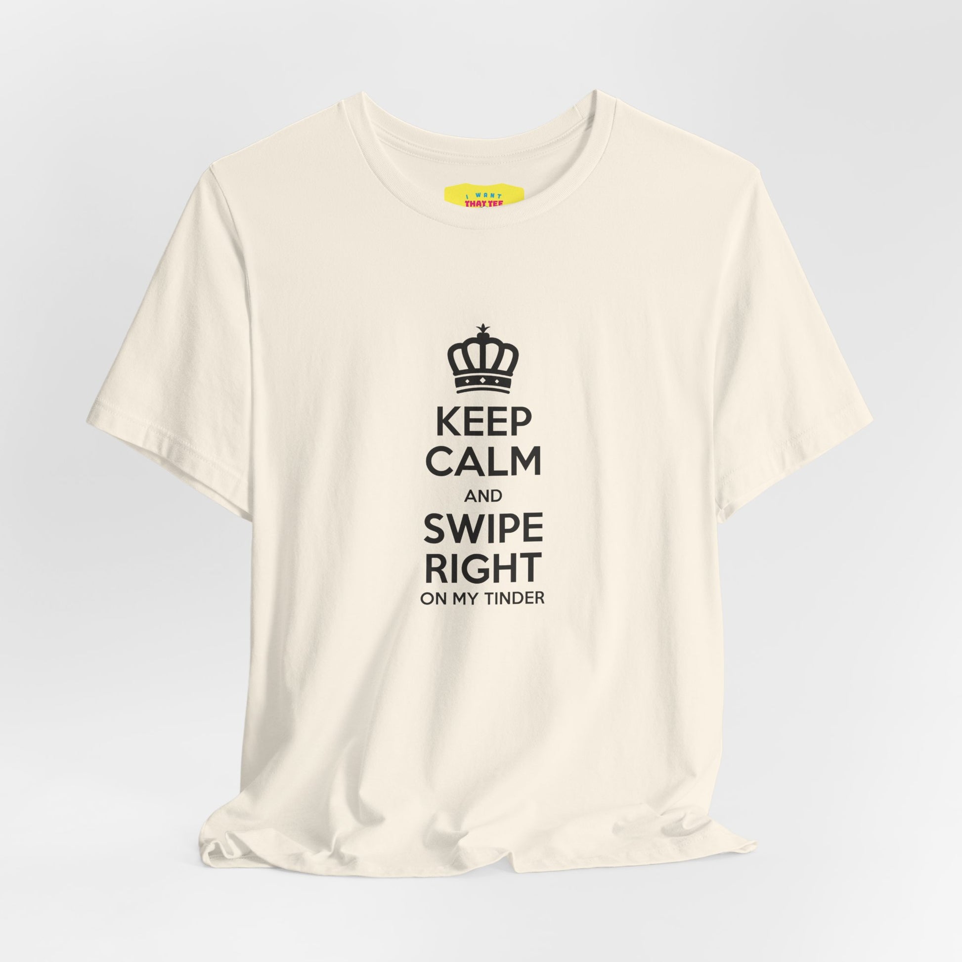 KEEP CALM AND SWIPE RIGHT ON MY TINDER - TINDER JOKE (Black text, Unisex Softstyle T-Shirt)